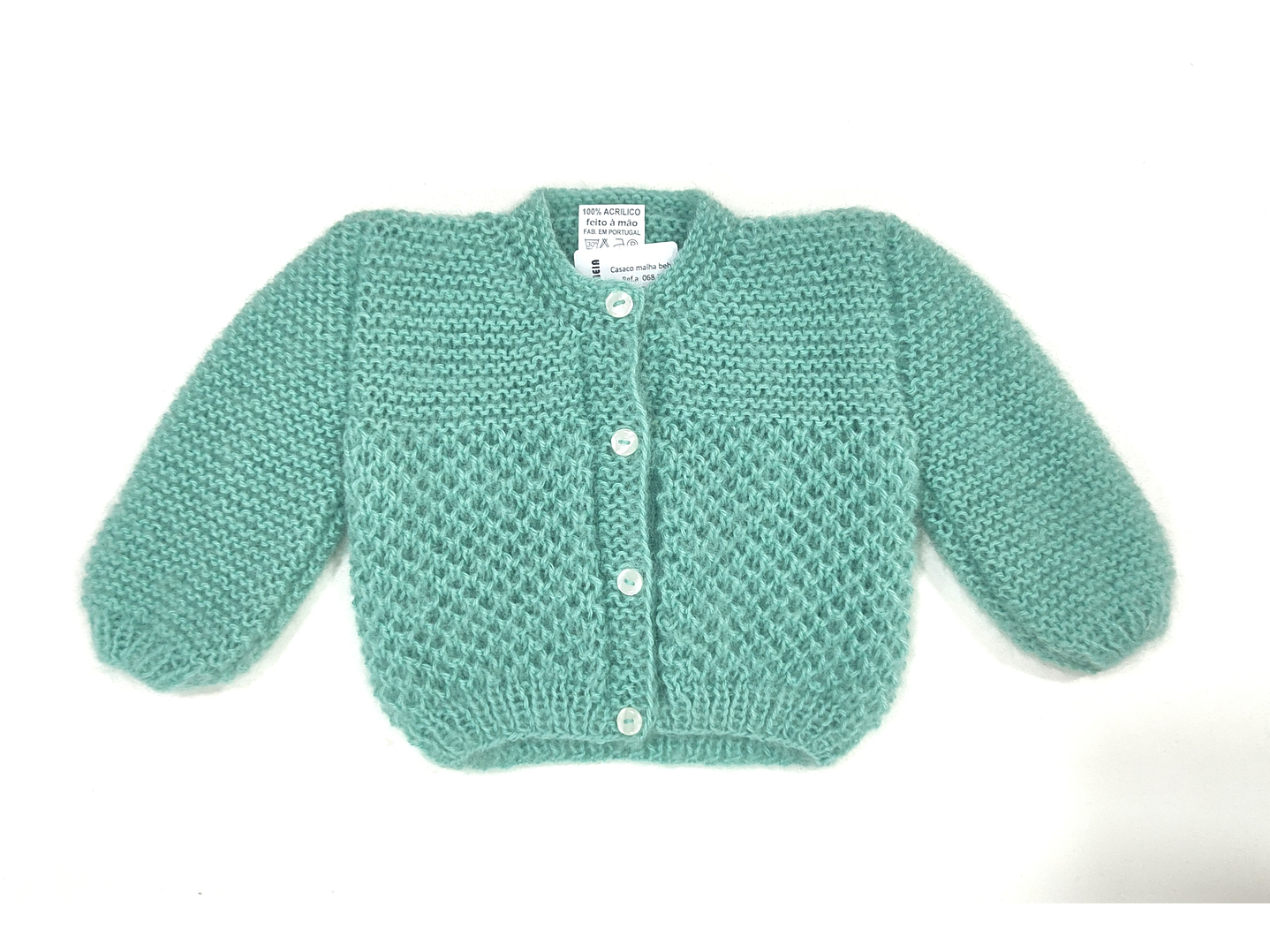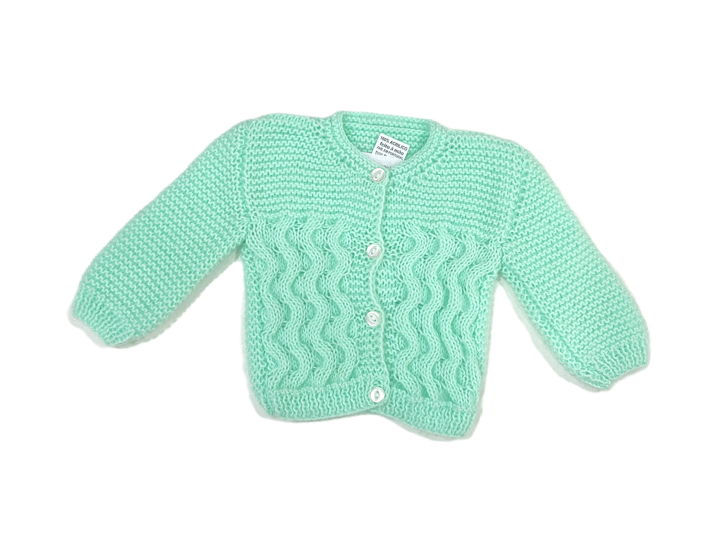 Casaco em malha para recém nascido, feito á mão. Disponível em várias cores.